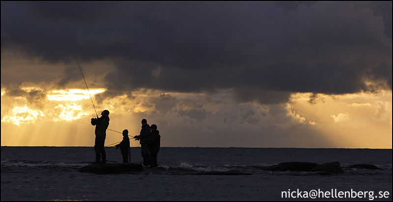 En kämpande sol försöker bryta fram mellan molnen, men det tycks bara bli gråare. Vid horisonten är det svarta moln med snö som dikterar villkoren. Mina steg för mig mot ännu ett favoritställe. Det tar bara tre eller fyra kast. Långt där ute går en blänkande fisk till väders. Ett hopp, två hopp, en rusning och ett tredje hopp. Nu jublar jag. Kanske bara inombords - jag är inte säker - men det rusar glädje och koncentration genom ådrorna. Öringen är stark och gör ytterligare ett par hopp. Men nu mattas den och låter sig snart ledas upp i strandkantens svall. Jag greppar den runt stjärtspolen och får handen full av glittrande fjäll. Det är en kanonblank havsöring. Inte någon superfisk, men vacker som en dag.